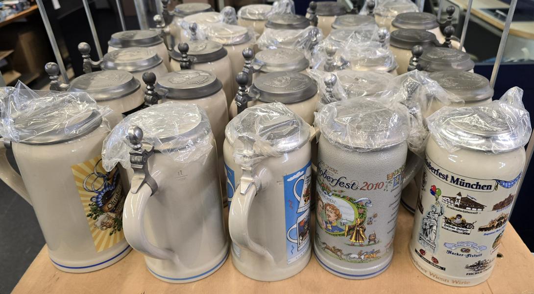 mehrere Fernseher u.a. „LG“ und „ViewSonic“, großer Posten Kamerazubehör, darunter viele Objektive und Kameras, Drohne „DJI“, größerer Posten PowerBanks, Smartphones und Laptos in OVP, Tablets, MacBook, PS5 mit Controller, Lautsprecher von „LG“ und Sonos, festplatte SSD 500 GB, Technics Quarz Direct Drive Turn-Table-System Mod.: SL-1210MK2, 1x E-Scooter von „SowFlow“ und 1x E-Scooter von „NineBot“, Massage-Gun, Reisekoffer “Floyd Cabin“, Jacke auch Chinchilla, Tasche JimmyChoo, Nike Jordan Jumpman Two Schuhe, größerer Posten mit Textilien in OVP u.a. Röcke, Hosen, T-Shirts, Blazer u.w., größerer Posten Schuhe u.a. Vans, Skechers, Diadora u.w., Autozubehör wie z.B. Autofußmatten, Waschzubehör u.w., größerer Posten Legoartikel u.a. Autos, größere Anzahl an Oktoberfestkrügen, Golfbag in Jeansoptik mit Schlägern, Bällen und weiterem Zubehör, Hometrainer „Dunlop“, Baseballschläger, Axt, Machete von Fiskars, Messer in Griffonoptik, Zigarren Humidor, verschiedene Weine, Makita Akkuschrauber, Akkuschrauber Einhell, Kaffeemühle, Stehlampe „Luxo Linea-F, Holzfigur „Madonna“, Briefmarkenalben, Gold- u. Silberschmuck, Modeschmuck, Armbanduhren, Münzen / Medaillen, Divisen und weitere Artikel