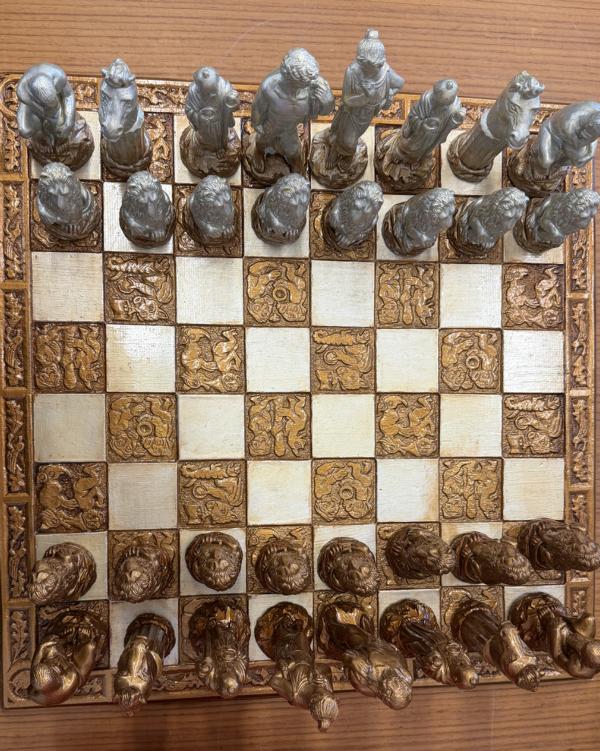 Wandteppich bez. „FGM“, Kaffeemaschinen „Nivona“ und „Lavazza“, Teleskop, Schachbrett, verschiedene Spirituosen,