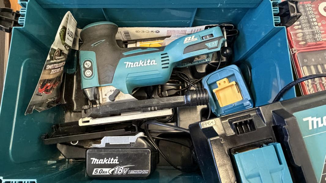 größerer Posten Werkzeug u. a. Bandschleifer „Scheppach“, Handkreissäge „Makita“, Akkubohrer „Makita“, Tischbohrer „Scheppach“, Winkelschleifer „Makita“, Bohrhammer „Bosch“, Werkzeugkoffer-Set, Nusskasten, Einhandzwingen „Parkside“