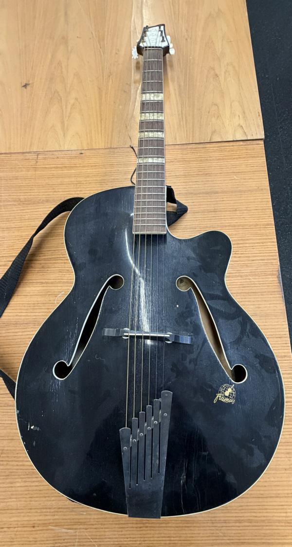 Gitarren u. a. „Arenas“, „Ibanez“ und „Famus“, Türkische Gitarren, Trommeln von PA/Meinl,
