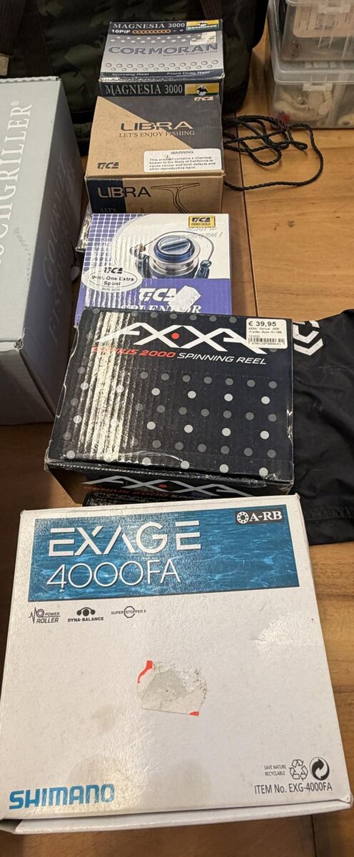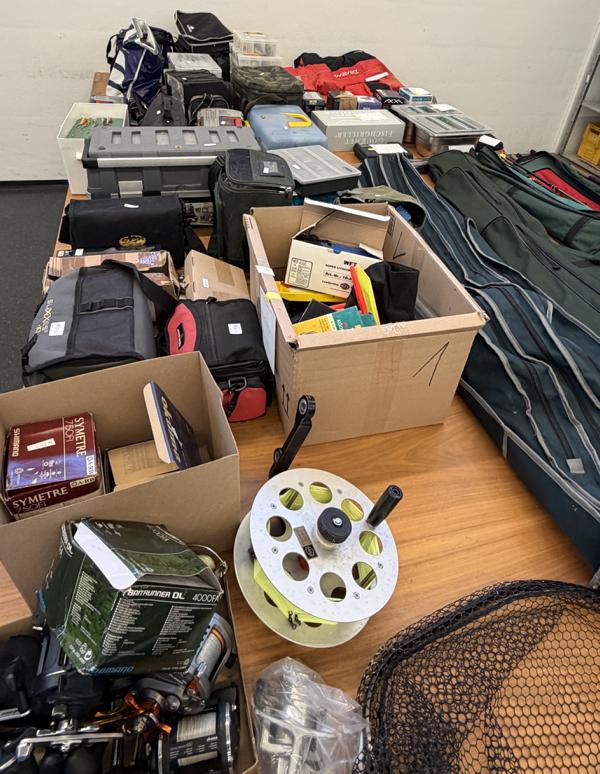div. Angeln und Zubehör u. a. Spulen, Köder und weitere Ausrüstung